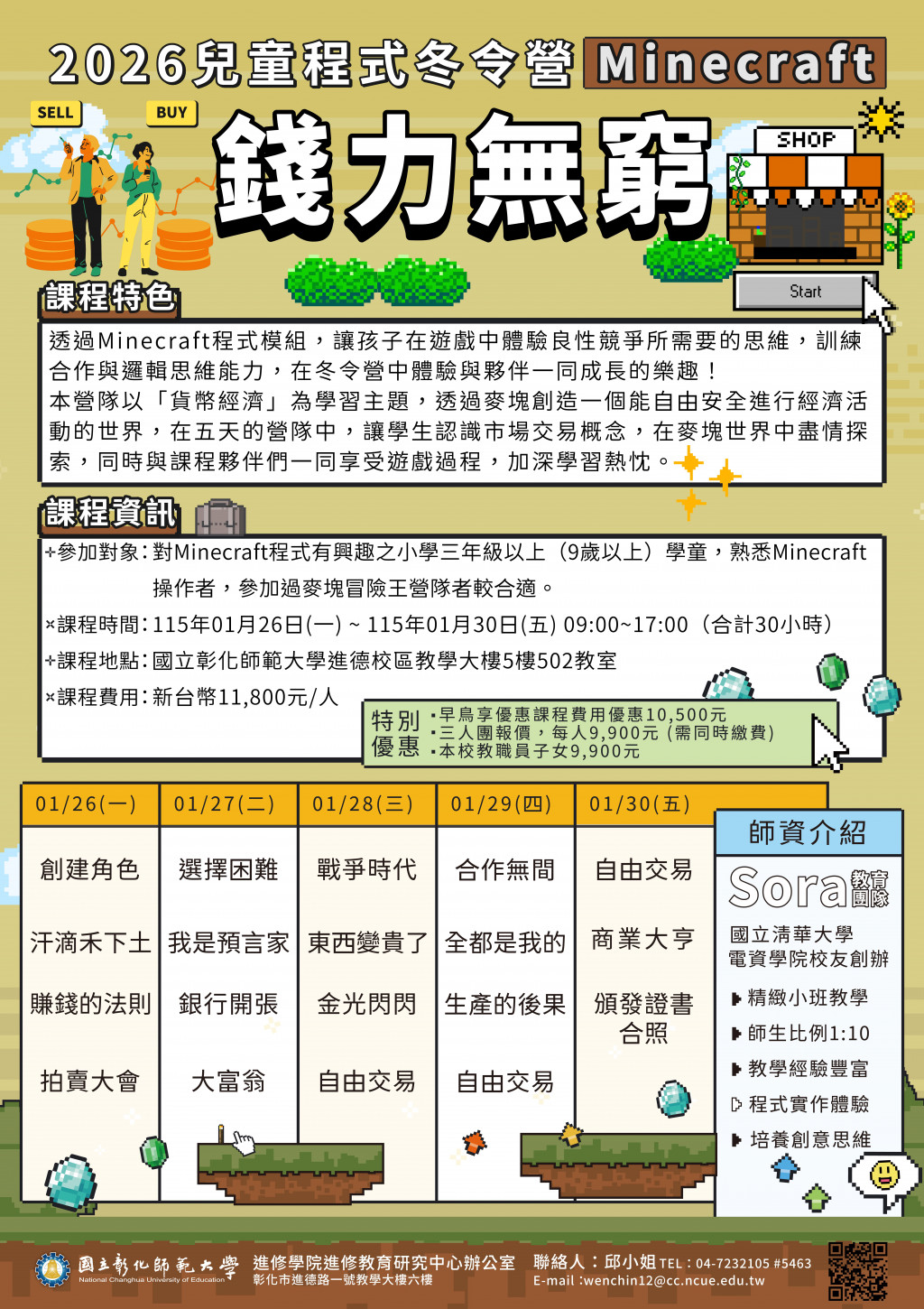 一、「2026兒童程式冬令營-Minecraft錢力無窮」