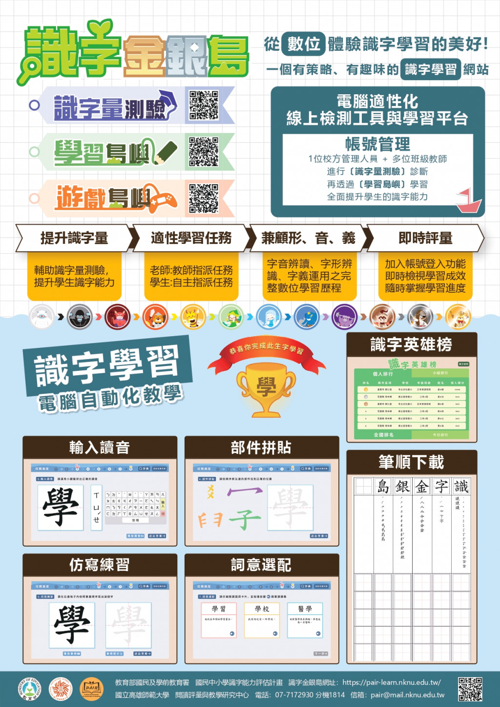 二、識字金銀島系統已於114年8月1日進行更新,以下數點說明: